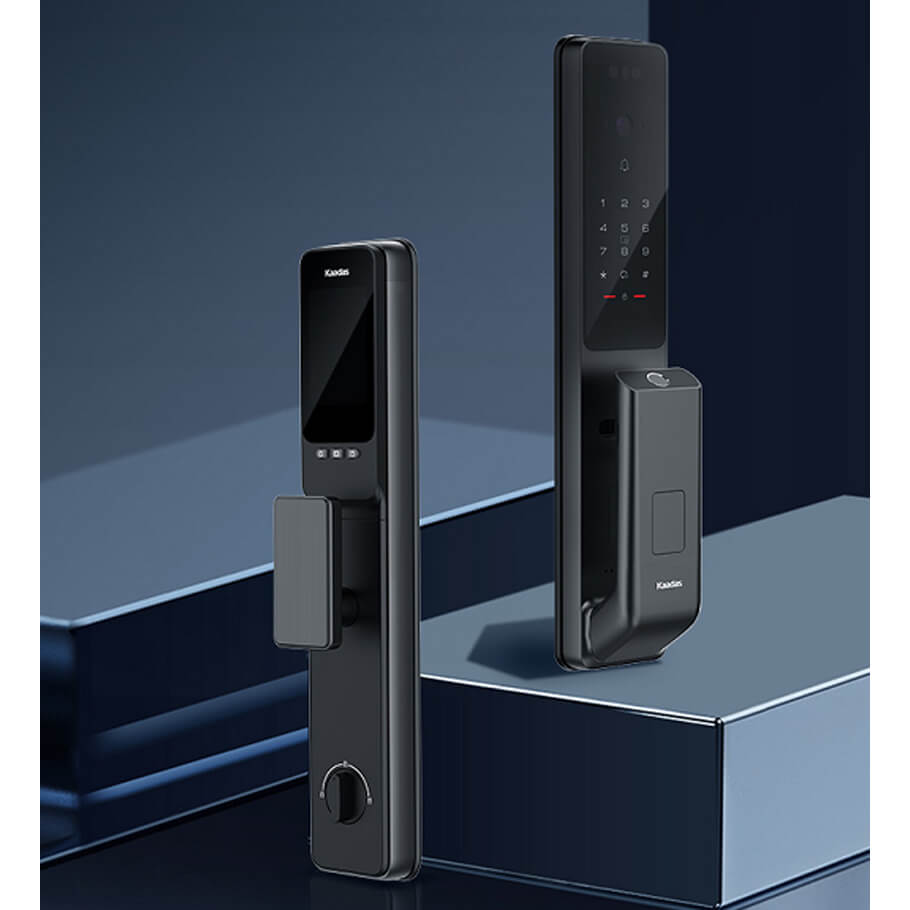 - Khóa cửa điện tử Kaadas Q9 FVP trang bị lên đến 7 phương thức mở cửa đa dạng: App wifi, gương mặt, tĩnh mạch ngón tay, vân tay, mã số, thẻ từ và chìa cơ.
