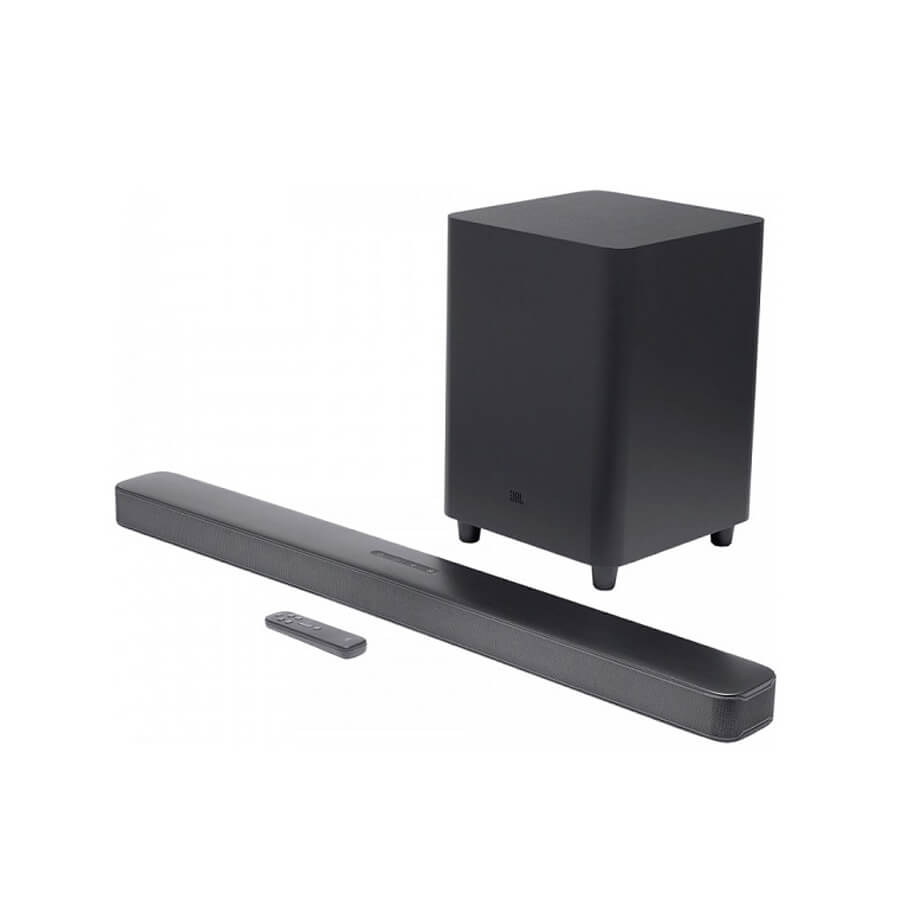 - Loa bộ JBL Bar 5.1 Surround gồm một thanh loa được trang bị 2 củ tweeter 1.25 inch ở hai bên và 5 loa toàn dải với công suất khuếch đại 250W và một Subwoofer kết nối không dây với củ loa trầm có kích thước 10 inch cho mức âm thanh phát ra lên đến 300W, cho tiếng bass thêm mạnh mẽ, sống động đến không ngờ.
