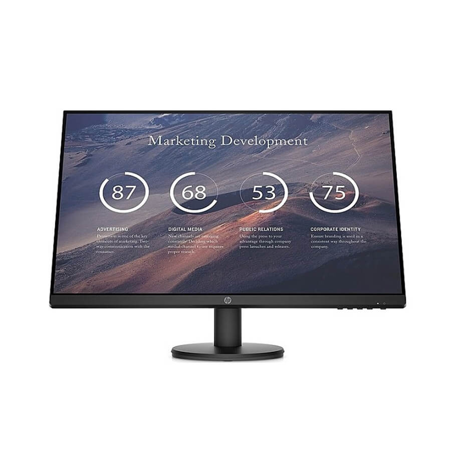 - Màn hình LCD HP P27v G4 9TT20AA trang bị màn hình có kích thước 27 inch cùng độ phân giải 1920 x 1080 pixels Full HD trên kích cỡ màn hình tiêu chuẩn 16:9 cho hình ảnh hiển thị rõ nét từng chi tiết.
