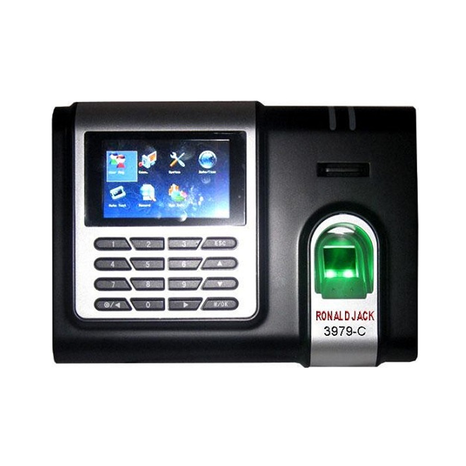 RONALD JACK 3979-C là giải pháp chấm công vân tay thế hệ mới, thiết kế màn hình màu sống động, dễ quan sát. Sản phẩm ra mắt năm 2011, sử dụng chip Intel Mỹ tốc độ xử lý cực nhanh, đáp ứng nhu cầu chấm công cho các doanh nghiệp vừa và nhỏ. Thiết bị không cần sử dụng thẻ, giúp tiết kiệm chi phí và tăng tính bảo mật. Ngoài chức năng chấm công, máy còn kết nối được với chuông báo giờ, phát giọng nói tiếng Việt và tiếng Anh, hiển thị tên nhân viên khi chấm công, mang lại trải nghiệm tiện lợi và hiện đại.
