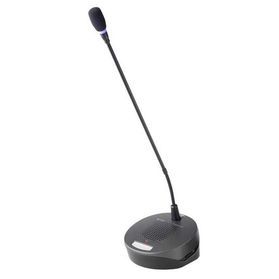 - Đèn LED tròn màu xanh dương dễ quan sát, cho biết khi nào micro đang bật để phát biểu, tránh nhầm lẫn trong cuộc họp.
