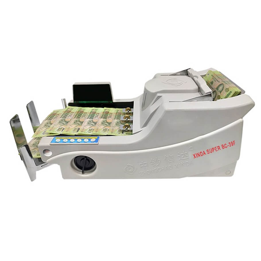 - Máy đếm tiền Xinda Super BC39F có băng tải dài, đếm các loại tiền polymer và cotton, phân biệt tiền giả, tiền siêu giả, tiền khác loại mệnh giá (bao gồm tiền mệnh giá nhỏ trong lớn và ngược lại), chế độ Auto tự động chuyển đổi mệnh giá cực nhanh và chính xác.
