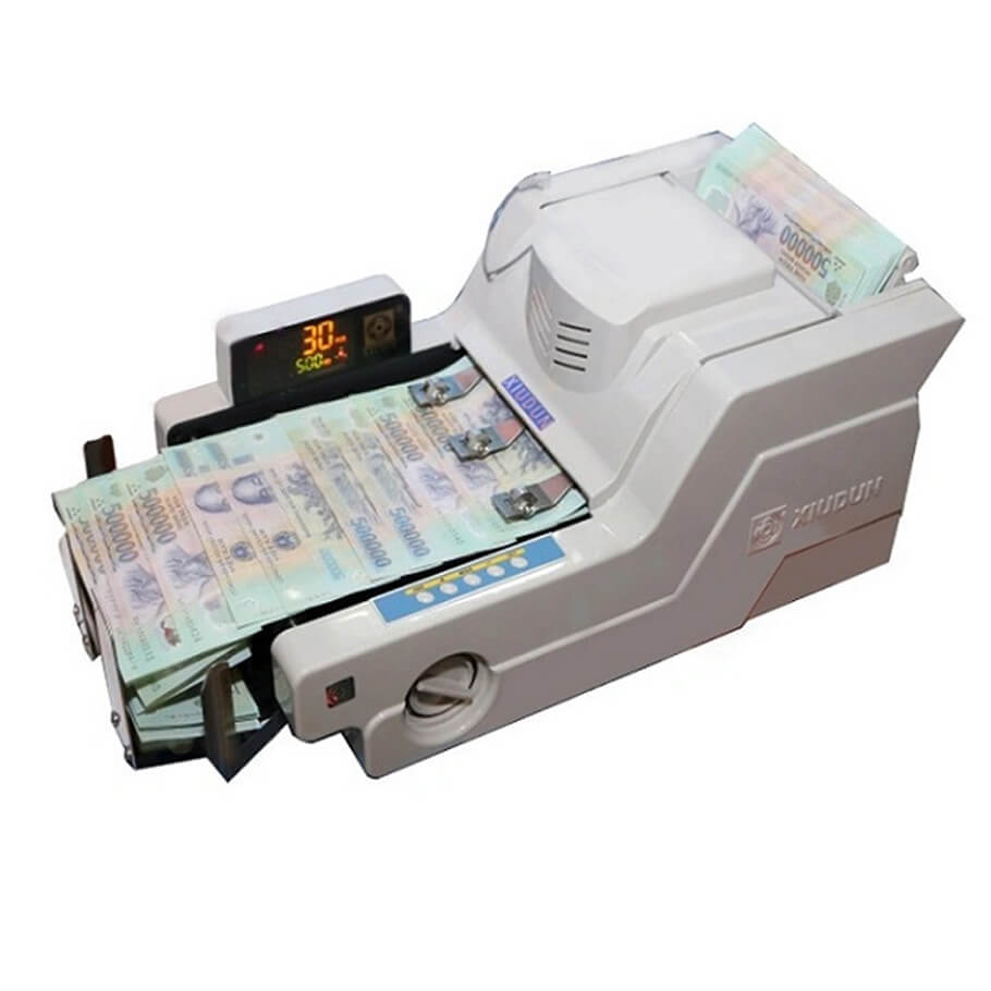 - Máy đếm tiền Xiudun 8228 phát hiện tiền giả, siêu giả, tiền lẫn loại polymer. Tự động xóa và cộng dồn. Chức năng đếm chia mẻ theo ý muốn, cộng tổng số tiền.