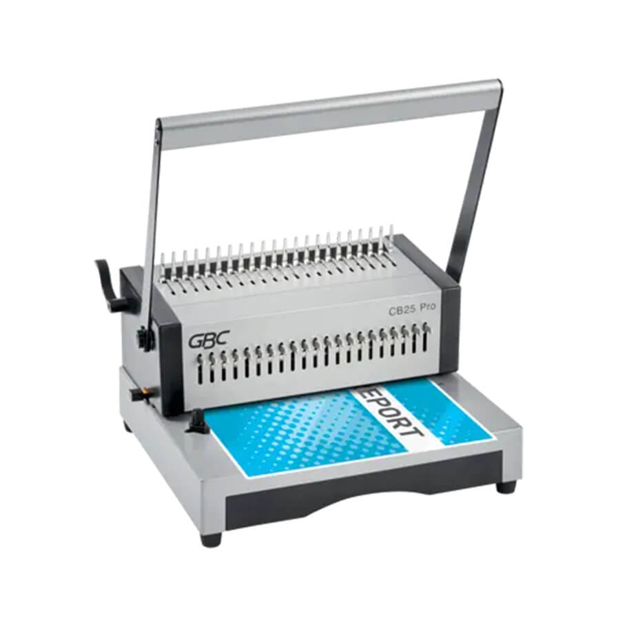 GBC CB25 Pro là máy đóng sách lò xo nhựa (comb binding) cao cấp, thiết kế chuyên dụng cho văn phòng, phòng in ấn và trung tâm dịch vụ photocopy. Sản phẩm cho phép đóng tài liệu dày lên đến 500 tờ A4, đáp ứng tốt nhu cầu đóng hồ sơ, báo cáo, tài liệu đào tạo số lượng lớn. Với cơ chế đục lỗ tay quay đôi chắc chắn, thân máy kim loại bền bỉ và thiết kế gọn gàng, CB25 Pro mang lại sự ổn định và chính xác cao trong quá trình sử dụng. Khả năng tùy chỉnh linh hoạt giúp máy phù hợp với nhiều khổ giấy và độ dày tài liệu khác nhau, tối ưu cho công việc chuyên nghiệp.