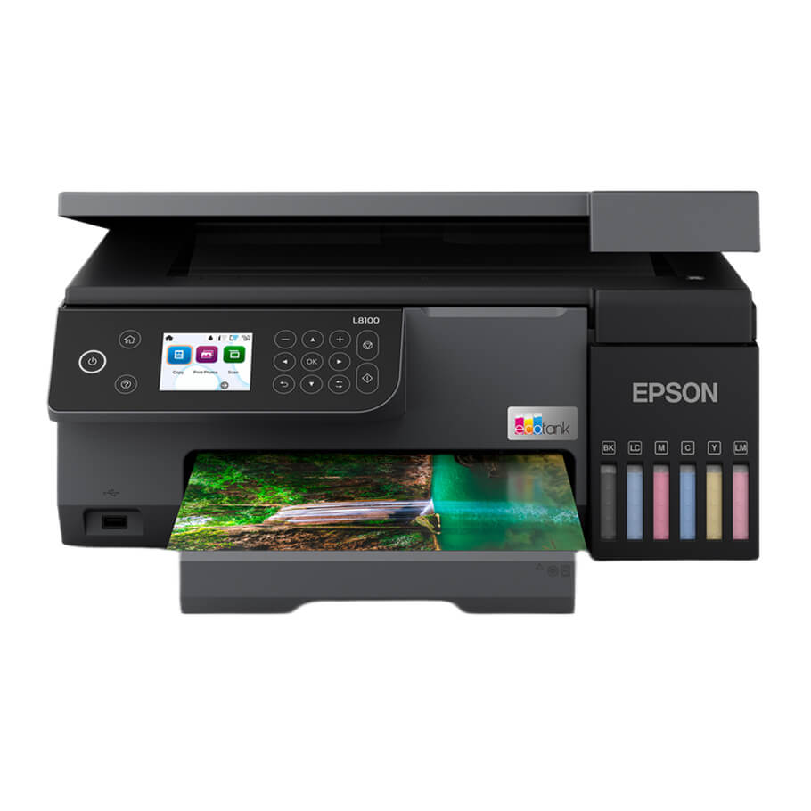 Epson L8100 là máy in phun màu đa năng cao cấp thuộc dòng EcoTank, mang đến khả năng in ảnh và tài liệu với chất lượng vượt trội. Với hệ thống mực 6 màu, máy thể hiện chi tiết hình ảnh tinh tế, dải màu rộng và độ chuyển sắc mượt mà. Thiết kế nhỏ gọn, thao tác thân thiện cùng kết nối không dây linh hoạt giúp người dùng dễ dàng in ấn từ bất kỳ thiết bị nào. L8100 là lựa chọn lý tưởng cho studio ảnh, văn phòng thiết kế, hoặc người dùng gia đình yêu thích in ảnh chuyên nghiệp.