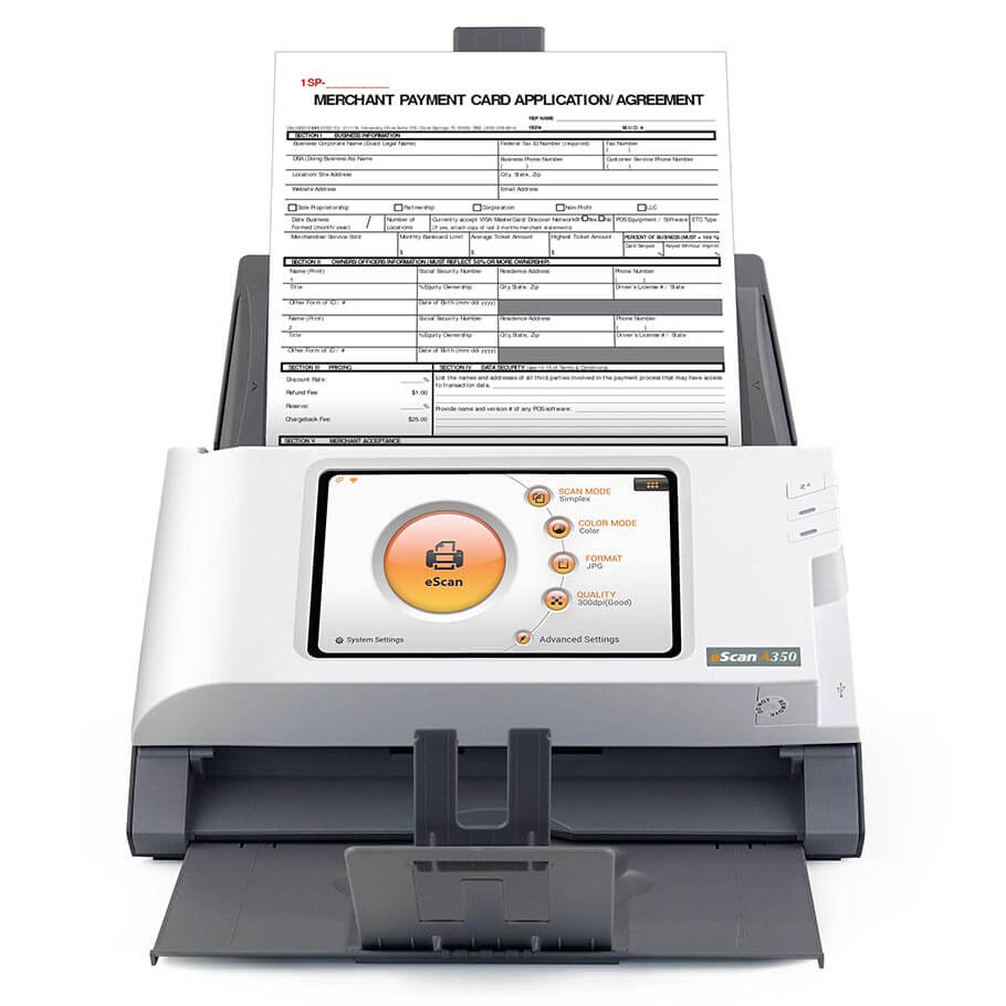 eScan A350 là máy quét tài liệu mạng độc lập (PC-less) hiệu suất cao, được thiết kế cho môi trường văn phòng hiện đại và hệ thống mạng doanh nghiệp. Thiết bị hoạt động hoàn toàn không cần máy tính, cho phép người dùng quét và số hóa tài liệu trực tiếp qua màn hình cảm ứng. Với màn hình màu cảm ứng lớn 7 inch, mọi thao tác được hiển thị trực quan, dễ sử dụng. eScan A350 phù hợp cho việc xử lý nhanh các loại tài liệu như hợp đồng, hóa đơn, biểu mẫu, thẻ cứng, ảnh và giấy tờ hành chính. Đây là giải pháp tối ưu giúp tăng tốc quy trình số hóa và chia sẻ dữ liệu trong hệ thống mạng nội bộ.