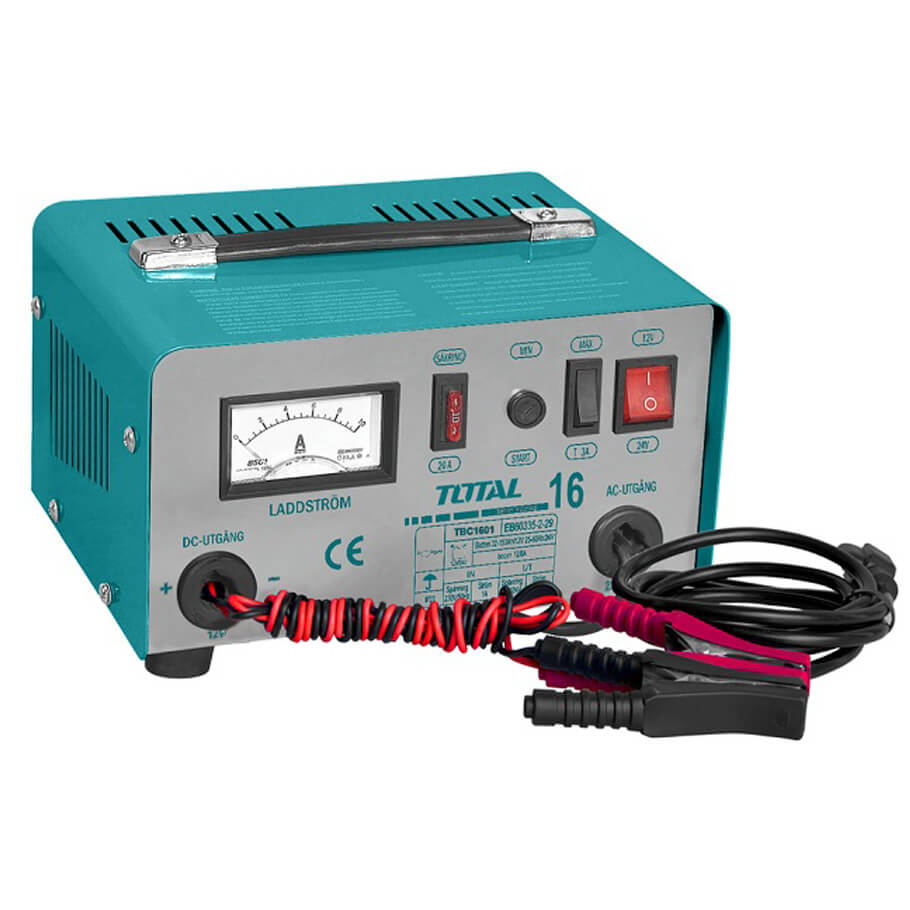 - TOTAL TBC1601 dùng để sạc điện cho bình ắc quy axit-chì, phù hợp sạc điện cho bình ắc quy của các loại xe máy, xe hơi, xe tải, ca nô, tàu đánh cá, tủ điện... cung cấp năng lượng điện để vận hành.