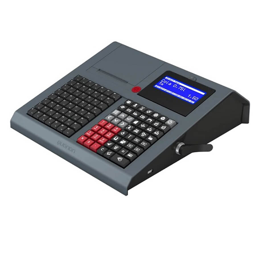 - Máy tính tiền QUORION QMP-6544 có màn hình bán hàng có thể điều chỉnh, khóa từ tích hợp.