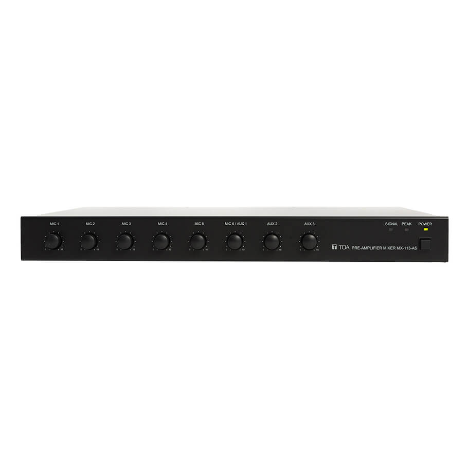 - MX-113-AS của TOA là bộ xử lý âm thanh mang lại chất lượng tuyệt vời. Bộ trộn tiền khuếch đại để bàn có kích cỡ 1U, bao gồm 6 ngõ vào Micro, 4 ngõ vào AUX và 2 ngõ ra mono sẽ đáp ứng mọi nhu cầu âm thanh của bạn.