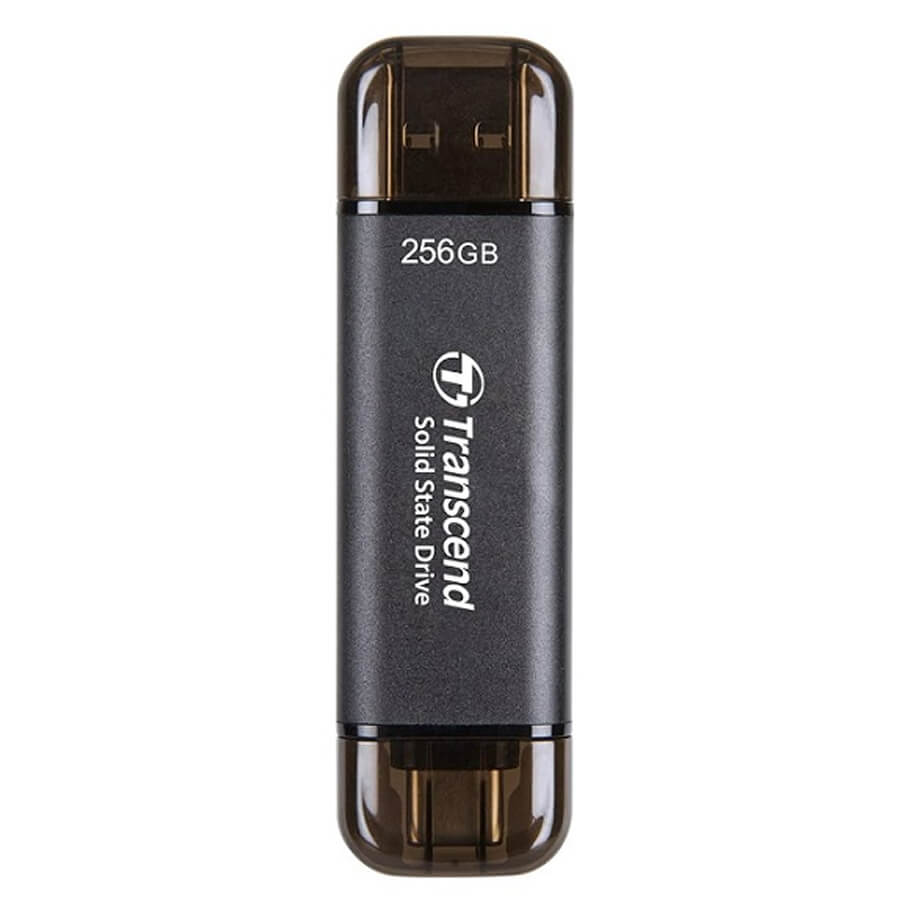 - Transcend ESD310 thiết kế hai đầu nối USB Type-A và Type-C trong một giúp việc kết nối các thiết bị trở nên dễ dàng hơn. Bạn chỉ cần cắm nó vào thiết bị của bạn, không cần cáp và bạn có thể tận hưởng tốc độ truyền tệp nhanh mà không bị chậm trễ!