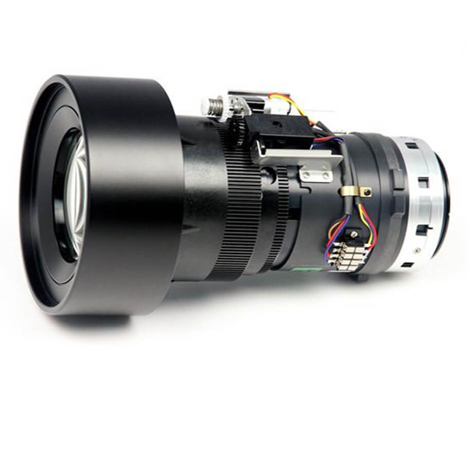 - Long-zoom optical lens for large venue projection.