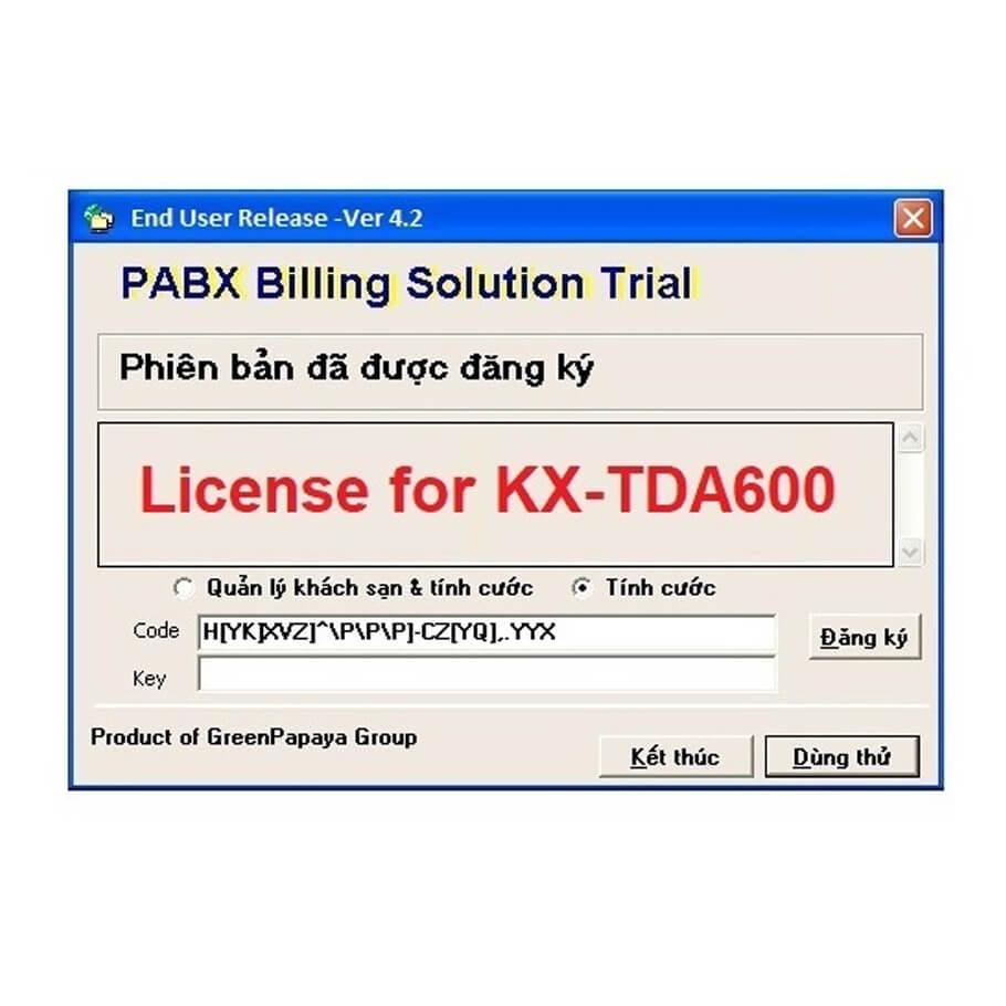 - Phần mềm tính cước tổng đài Panasonic KX-TDA600 và KX-TDE600, tự động tính cước gọi đi, thống kê báo cáo cước bất kỳ, tạo mã cá nhân cho mỗi người khi gọi đi...