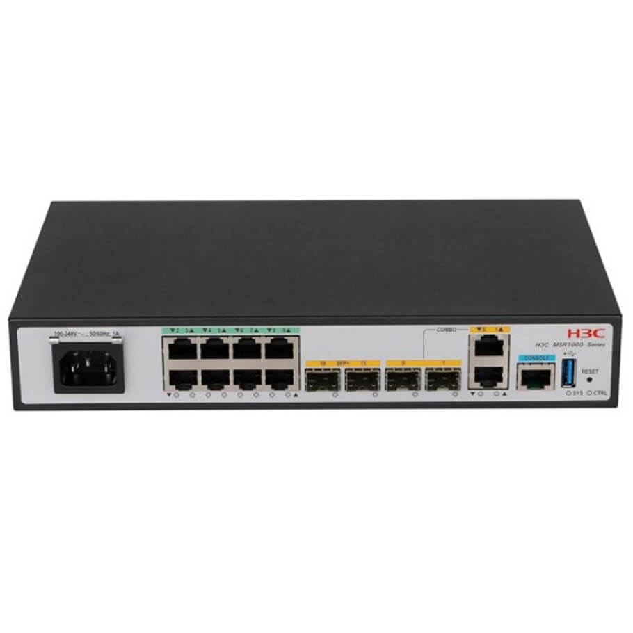 - Bộ định tuyến H3C MSR1008 cho khả năng chịu tải lên đến 1000 users. Router này tích hợp 02 cổng WAN combo 1GE và 02 cổng WAN SFP+ 10GE, tạo ra một hệ thống kết nối đa dạng để đáp ứng nhu cầu kết nối của mọi doanh nghiệp. Với 08 cổng LAN 10/100/1000Base-T, sản phẩm cung cấp khả năng mở rộng mạng nhanh chóng và hiệu quả.