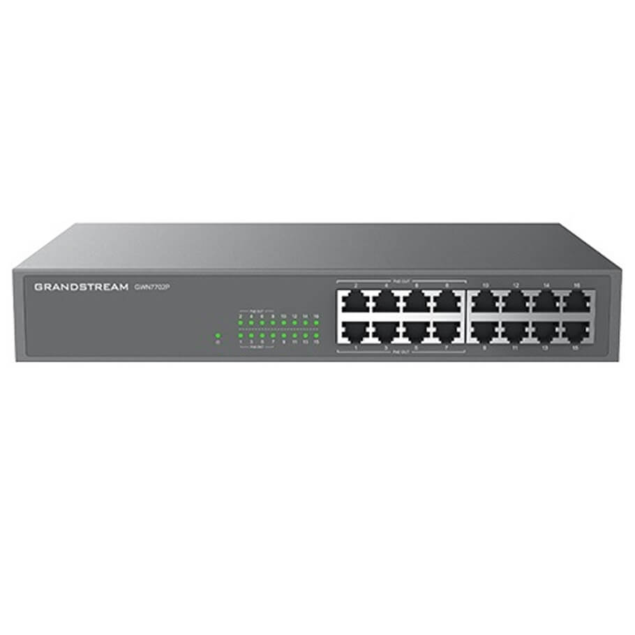 - Switch PoE 16 cổng của Grandstream là sự lựa chọn lý tưởng cho các văn phòng nhỏ và doanh nghiệp vừa, mang đến hiệu suất cao và đáng tin cậy trong việc xây dựng mạng nội bộ.