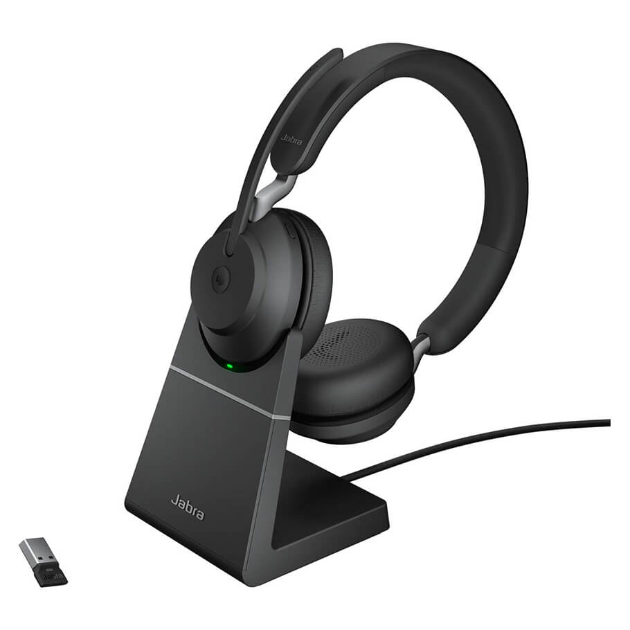 Jabra Evolve2 65 Link390a MS Stereo Stand là tai nghe không dây chuyên dụng cho công việc văn phòng và họp trực tuyến, mang lại trải nghiệm âm thanh rõ ràng, kết nối ổn định và thiết kế đeo thoải mái trong thời gian dài. Sản phẩm phù hợp cho người dùng cần làm việc linh hoạt giữa nhiều thiết bị, đặc biệt trong môi trường làm việc từ xa hoặc hybrid.