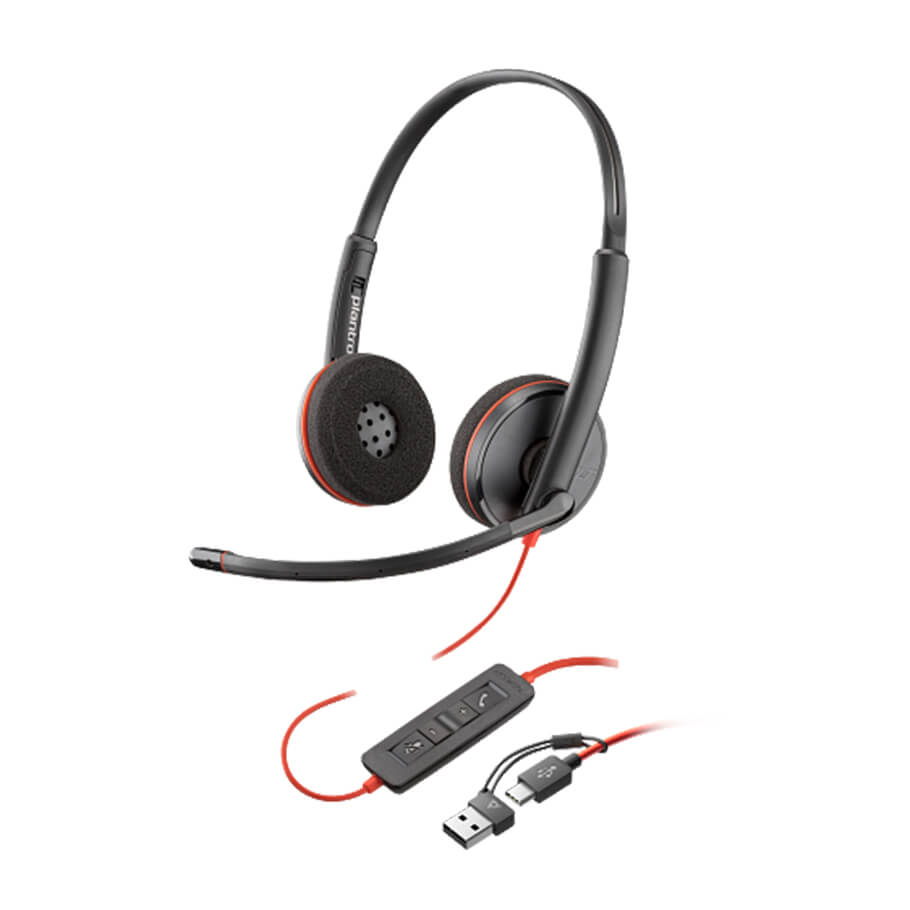 Tai nghe Poly Blackwire 3220 Stereo USB-C + USB-C/A Adapter (8X2J9A6)