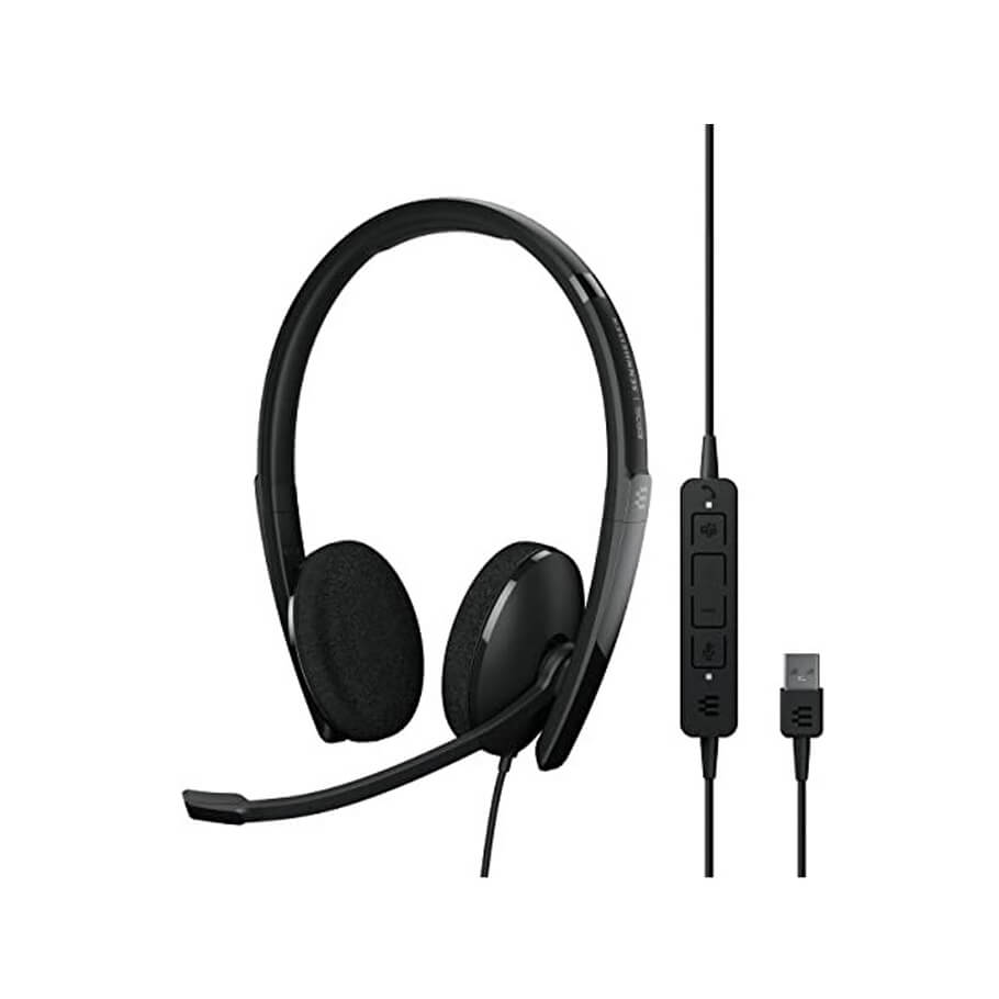 | Wearing style | On-ear, double-sided USB-C headset with in-line call control and foam earpads |