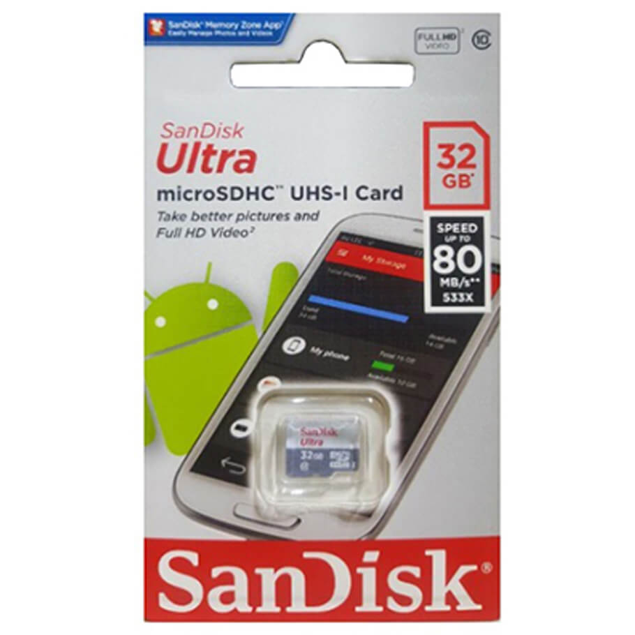 - Thẻ nhớ microSD SanDisk Ultra 32GB UHS-I với dung lượng lên tới 32GB, vì vậy bạn sẽ có rất nhiều không gian để lưu trữ hình ảnh và video của bạn.