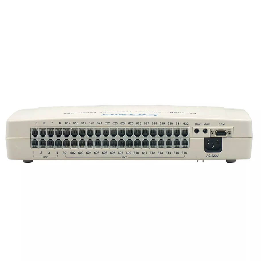 - Tổng đài điện thoại 04 line vào - 16 máy nhánh, cho phép mở rộng đến 8 line vào-32 máy nhánh (Trang bị thêm card mở rộng 04 trung kế CO4, card mở rộng 8 máy nhánh CE8).