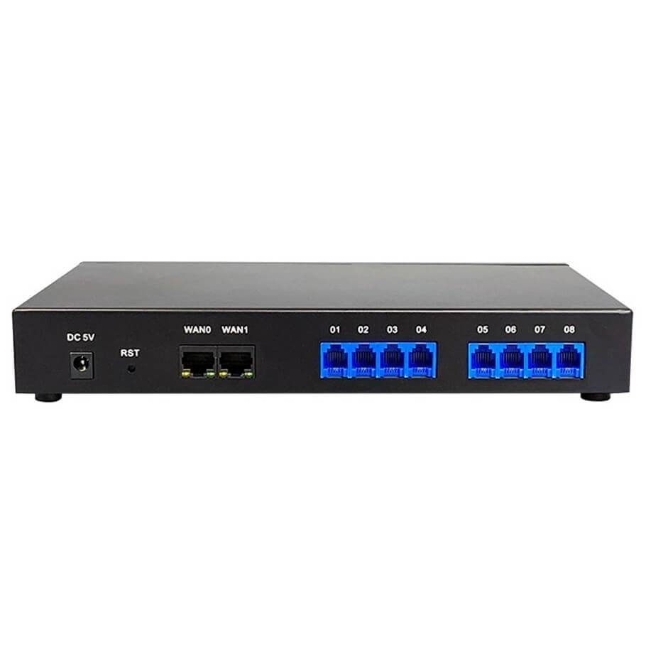 - Được thiết kế với 16 tài khoản Siptrunk, 8 cuộc gọi đồng thời và lên đến 64 người dùng cùng 8 cổng FXO.