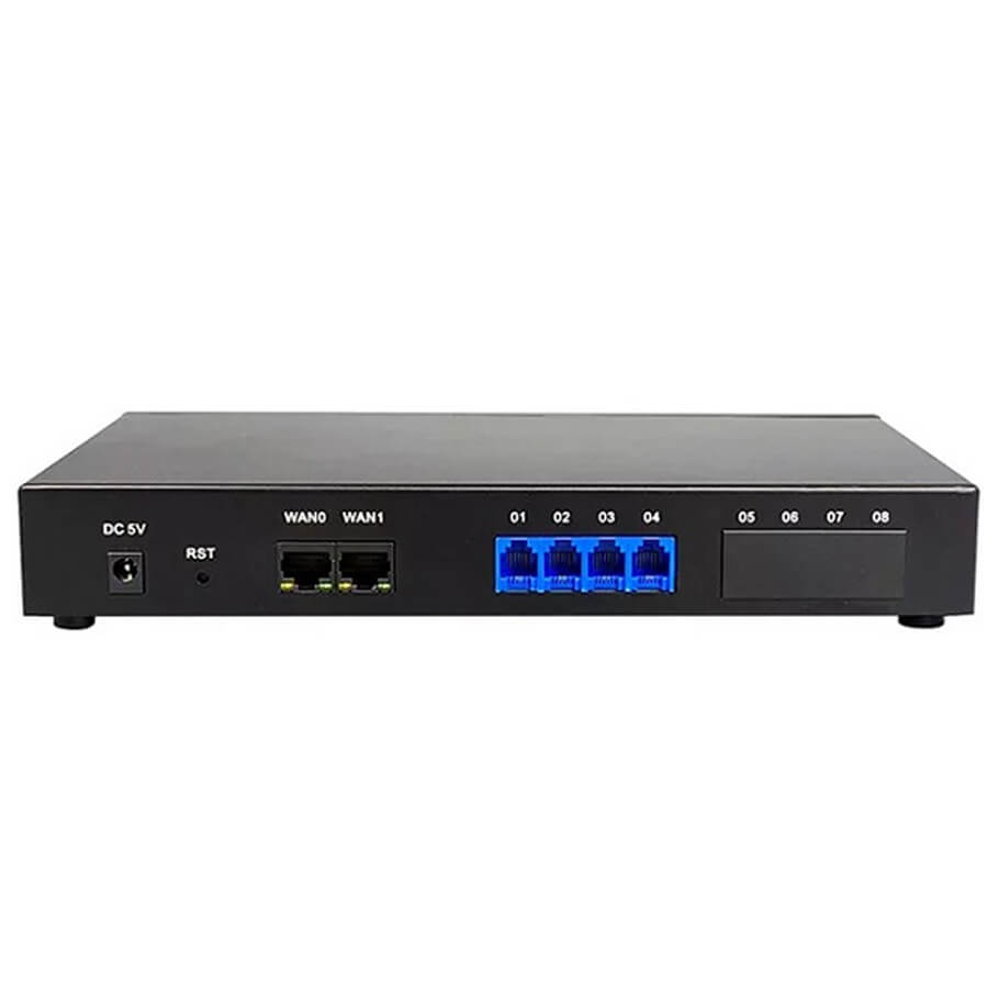 - Hỗ trợ 32 tài khoản Siptrunk, 16 cuộc gọi đồng thời và 8 cổng FXO.