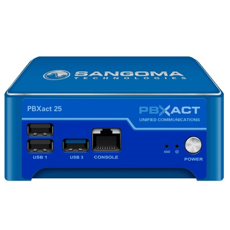- Tổng đài IP Sangoma PBXact 25 cung cấp giao diện quản lý GUI và các tính năng Quick Setup giúp triển khai máy nhánh cho văn phòng nhanh chóng. PBXact bao gồm các tính năng như lời chào IVR, Time Condition, Queues, ACD. Tổng đài IP Sangoma PBXact 25 hỗ trợ lên đến 25 máy nhánh và 15 cuộc gọi đồng thời.
