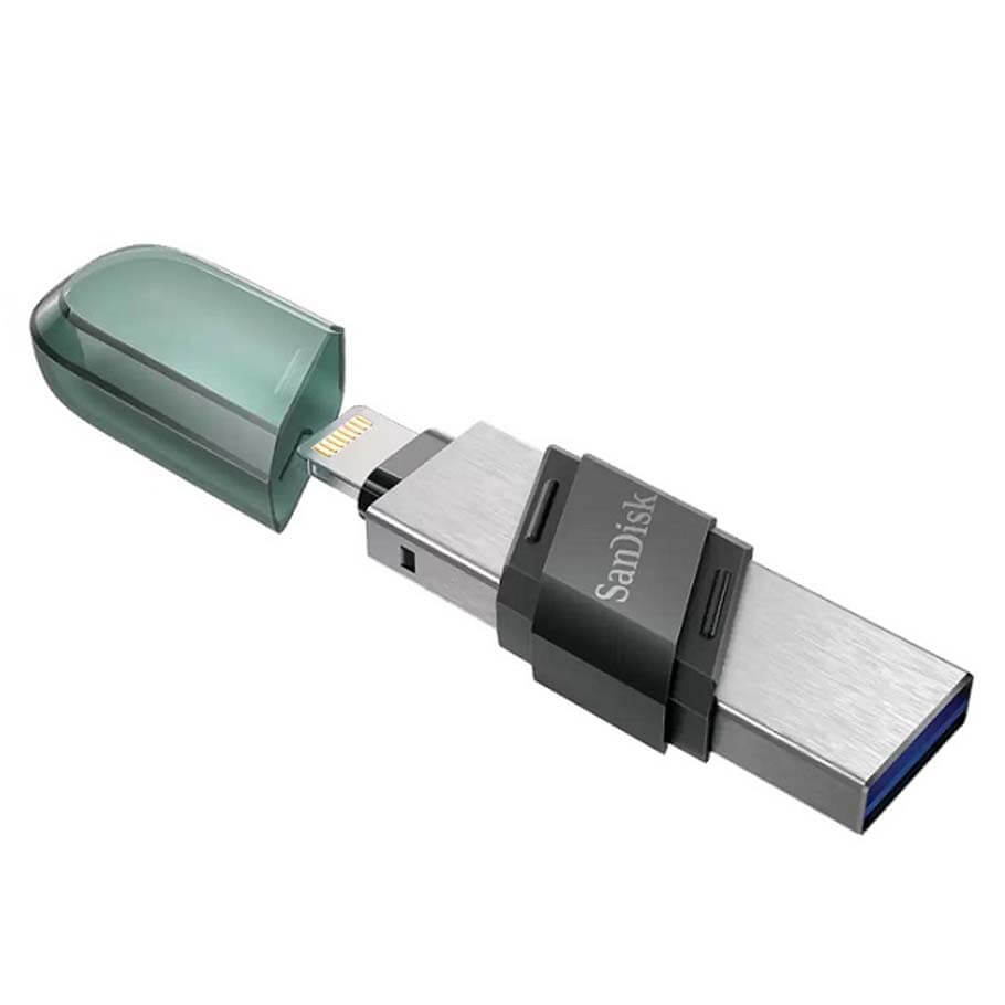 - USB SanDisk iXpand Flash Drive Flip SDIX90N được thiết kế với 1 đầu là cổng USB Type-A để kết nối với máy tính hay các thiết bị hỗ trợ khác, 1 đầu còn lại là cổng Lightning để kết nối với các thiết bị iPhone, iPad. Dung lượng 64GB cho phép bạn thoải mái không gian lưu trữ.