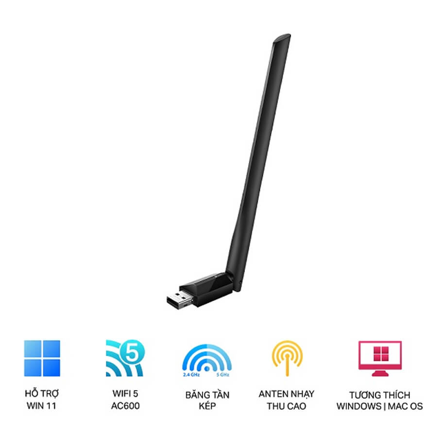 Archer T2U Plus là bộ chuyển đổi USB Wi-Fi băng tần kép tốc độ cao, giúp nâng cấp kết nối không dây cho máy tính hoặc laptop của bạn. Với tốc độ lên đến 600 Mbps, hỗ trợ chuẩn AC và công nghệ 256QAM, thiết bị mang đến trải nghiệm Wi-Fi mượt mà cho streaming HD, chơi game và lướt web. Ăng-ten độ lợi cao 5dBi mở rộng vùng phủ sóng và tăng cường độ ổn định, trong khi thiết bị hoàn toàn tương thích với các hệ điều hành Windows và Mac OS X mới nhất.