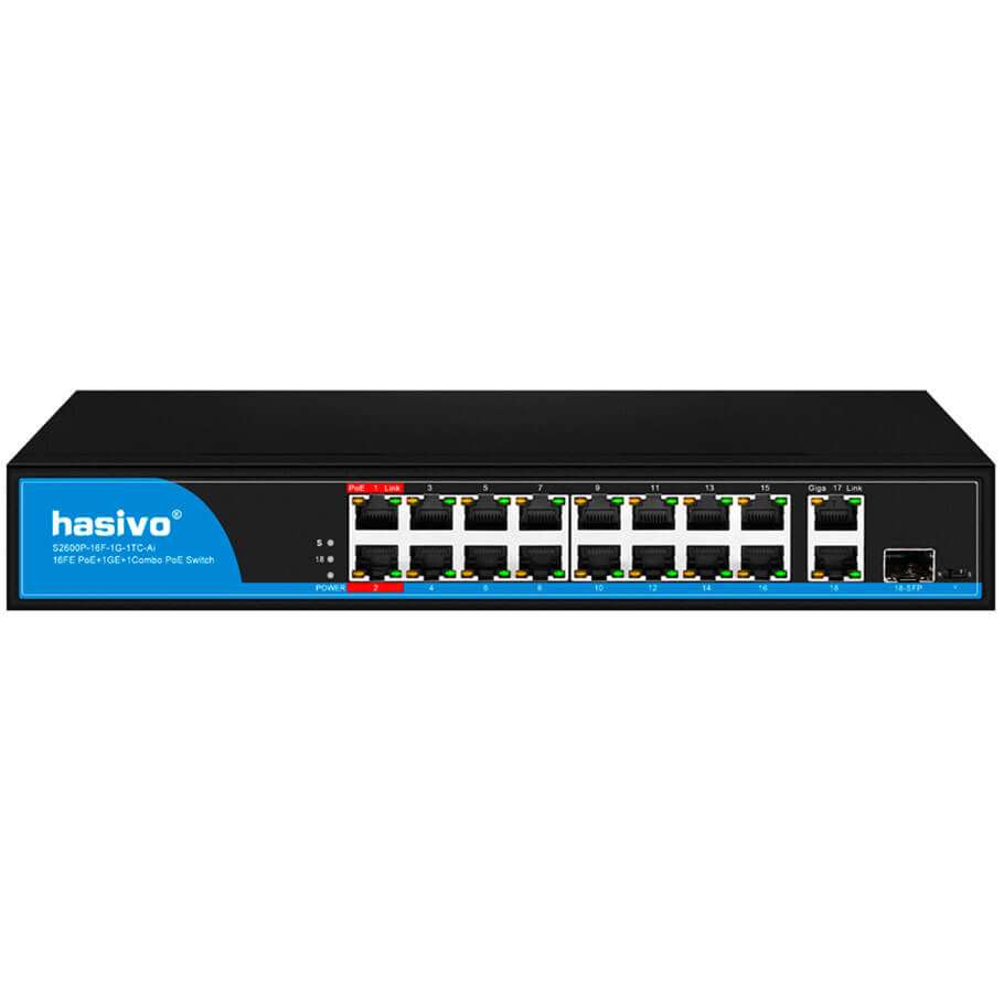 16-Port FE PoE + 2-Port GE RJ45 Uplink + 1-Port Combo Switch HASIVO S2600P-16F-1G-1TC