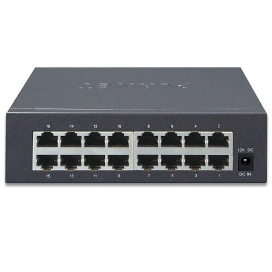 - Switch 16-port Planet GSD-1603 cung cấp 16 cổng RJ45 10/100/1000Mbps cho kết nối mạng tốc độ cao, có thể tự động xác định, chọn tốc độ truyền phù hợp và chế độ bán song công/ song công. Bộ chia mạng 16-port Planet GSD-1603 có thể xử lý lượng truyền dữ liệu cực lớn trong một cấu trúc liên kết an toàn liên kết đến các máy chủ đường trục hoặc công suất cao trong mạng doanh nghiệp.