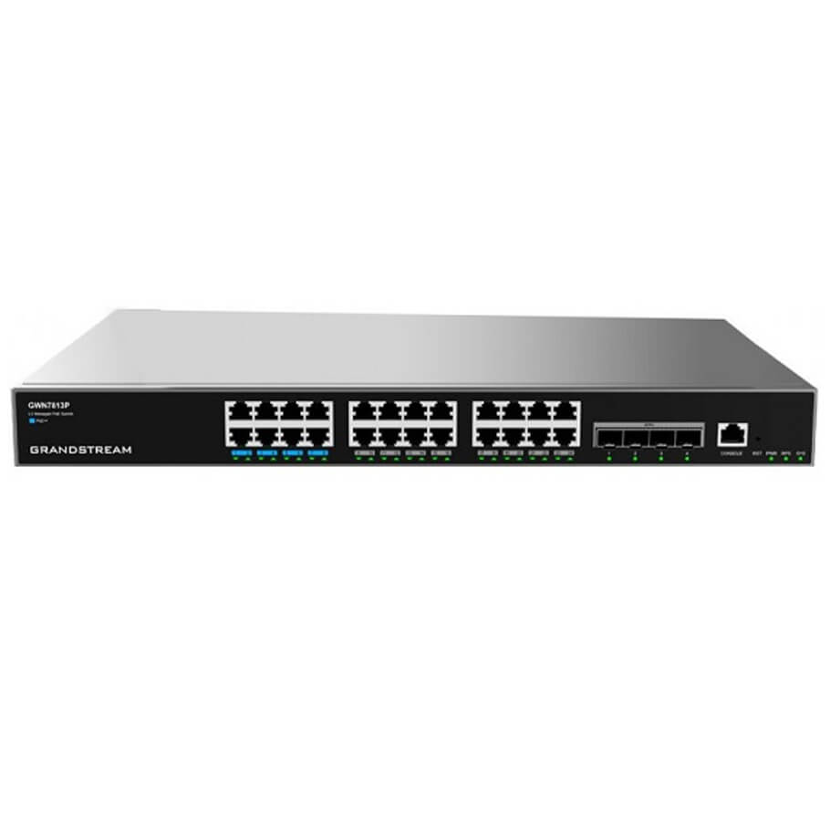 24-Port Gigabit PoE + 4-Port 10Gigabit SFP+ Layer 3 Managed Switch Grandstream GWN7813P