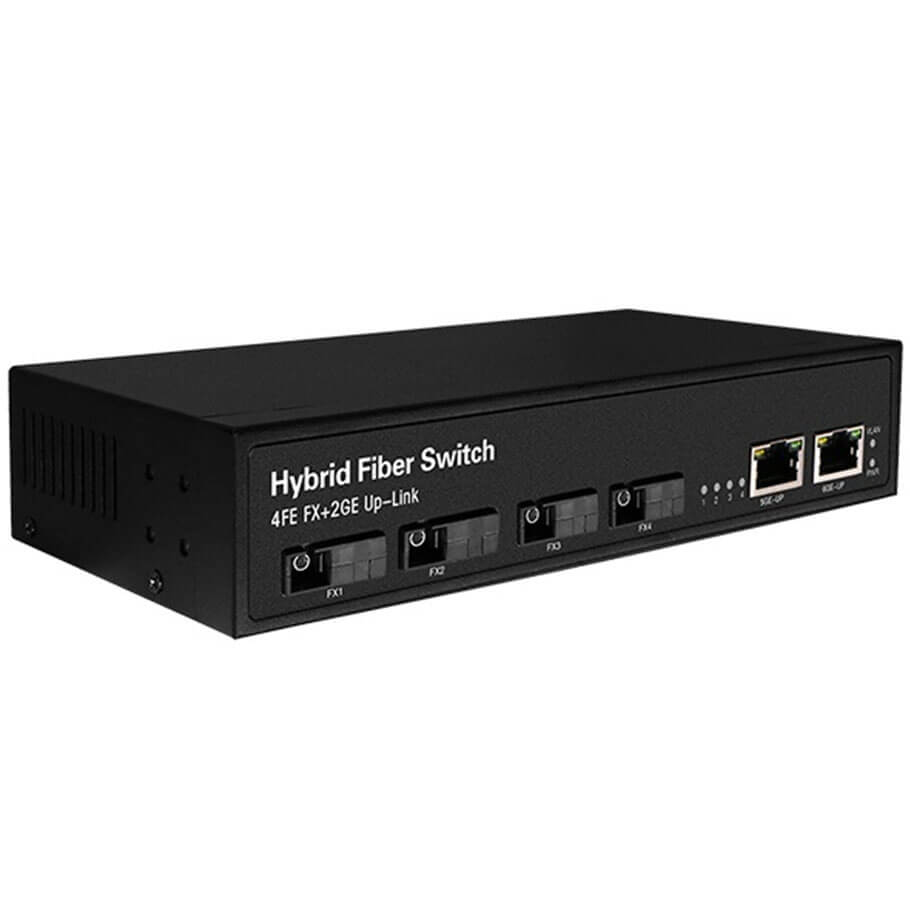 4 cổng Quang FX100 (100Mbps) + 2 cổng Gigabit RJ45 Uplink Switch HASIVO F1200-4FX-2G
