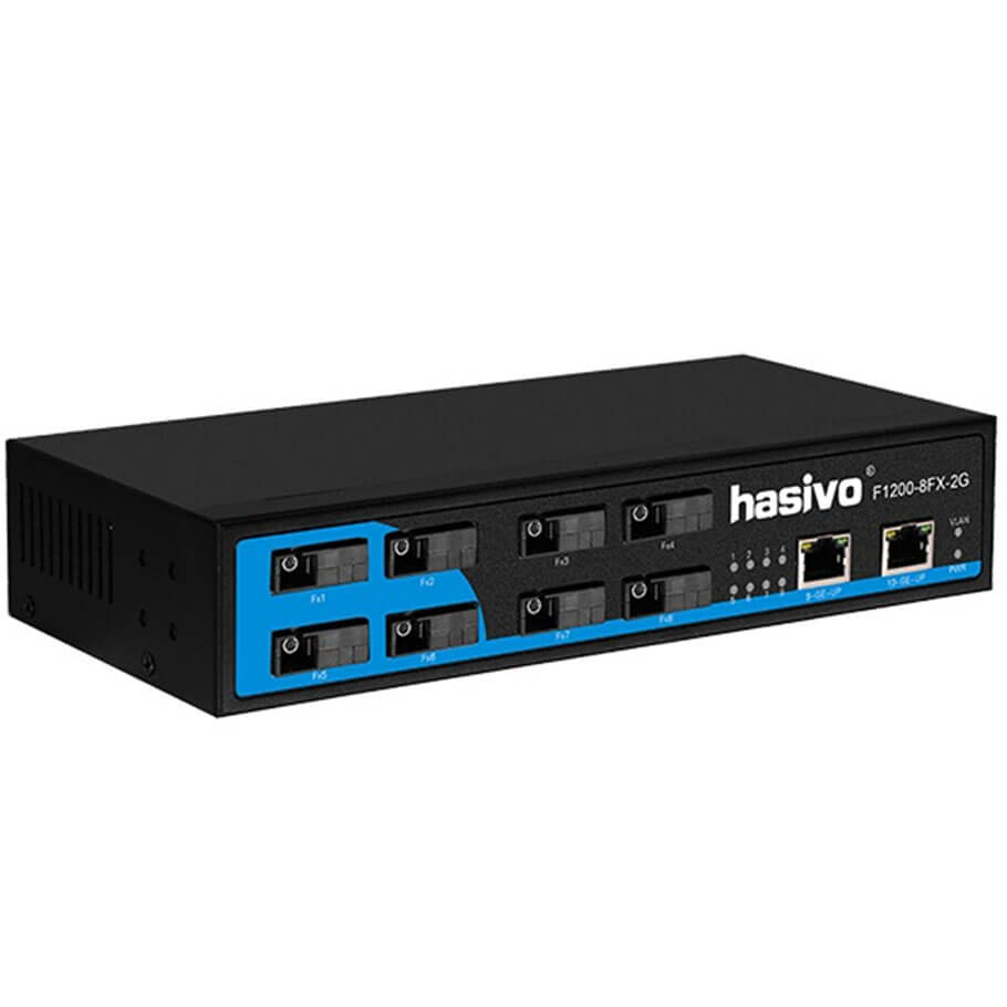 8 cổng Quang FX100 (100Mbps) + 2 cổng Gigabit RJ45 Uplink Switch HASIVO F1200-8FX-2G