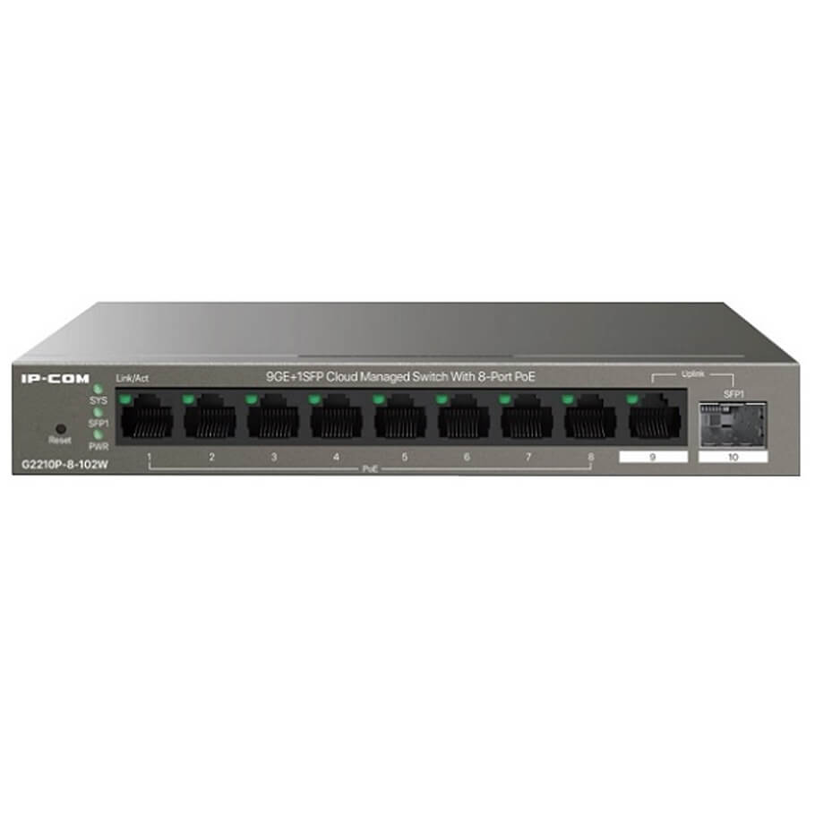 IP-COM G2210P-8-102W là switch PoE thông minh quản lý qua Cloud, được thiết kế tối ưu cho các hệ thống mạng vừa và nhỏ. Thiết bị tích hợp 8 cổng Gigabit PoE và 1 cổng SFP uplink, đáp ứng linh hoạt nhu cầu kết nối camera, Wi-Fi AP và các thiết bị mạng đầu cuối. Với khả năng quản lý từ xa qua nền tảng ProFi Cloud và ứng dụng di động, việc giám sát và vận hành hệ thống trở nên đơn giản, tiết kiệm thời gian và chi phí. Thiết kế nhỏ gọn, hiệu suất ổn định, phù hợp cho văn phòng, cửa hàng, khách sạn và hệ thống giám sát an ninh.
