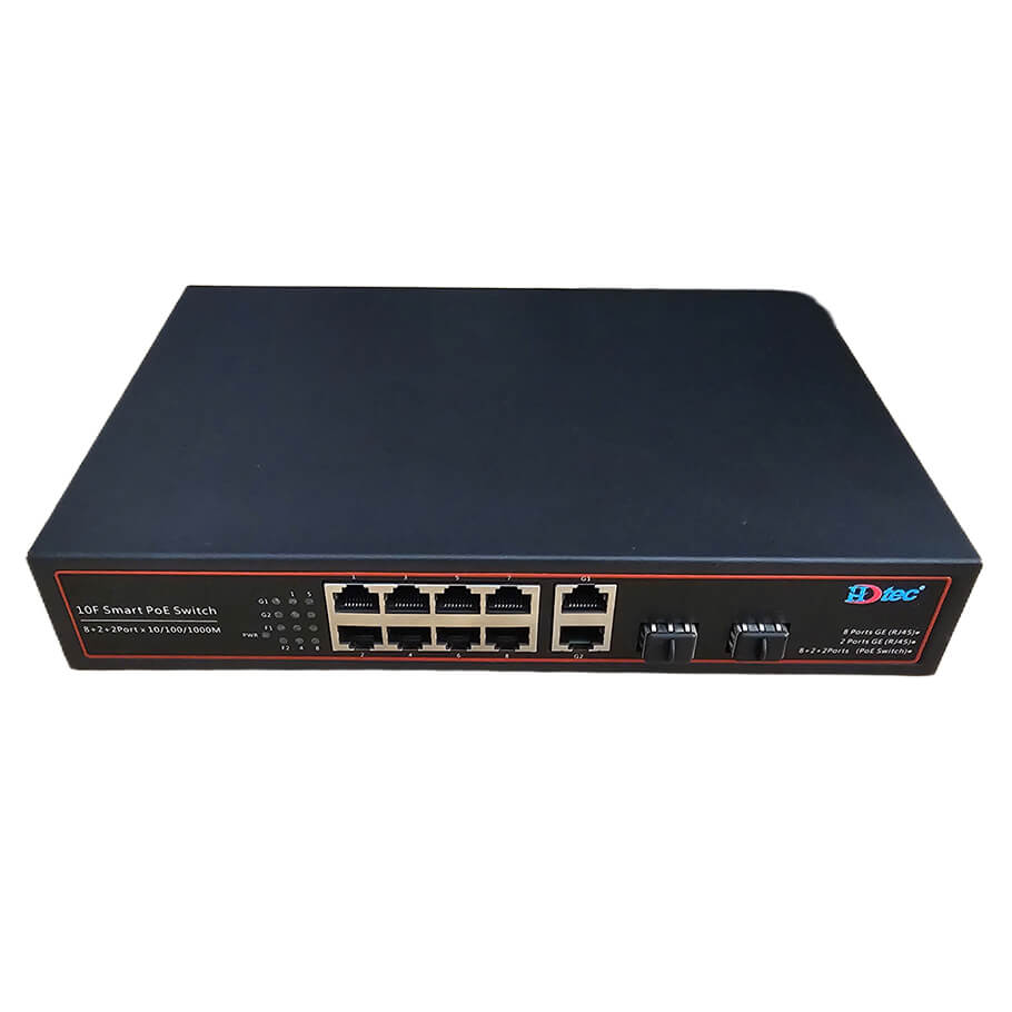 8P PoE 1G + 2 RJ45 Uplink 1G + 2 SFP 1.25G Switch HDTEC