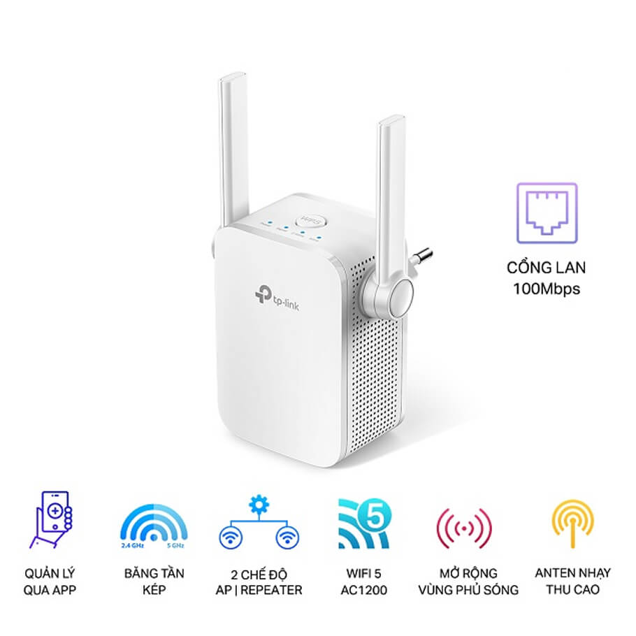 - RE305 giúp mở rộng vùng phủ sóng Wi-Fi tới những khu vực mà router chính không thể truyền tới, chẳng hạn như tầng trên, góc phòng hoặc ban công. Tốc độ kết hợp lên đến 1200Mbps (867Mbps trên băng tần 5GHz và 300Mbps trên băng tần 2.4GHz) đảm bảo truyền tải ổn định khi xem video HD, chơi game trực tuyến hoặc làm việc từ xa.