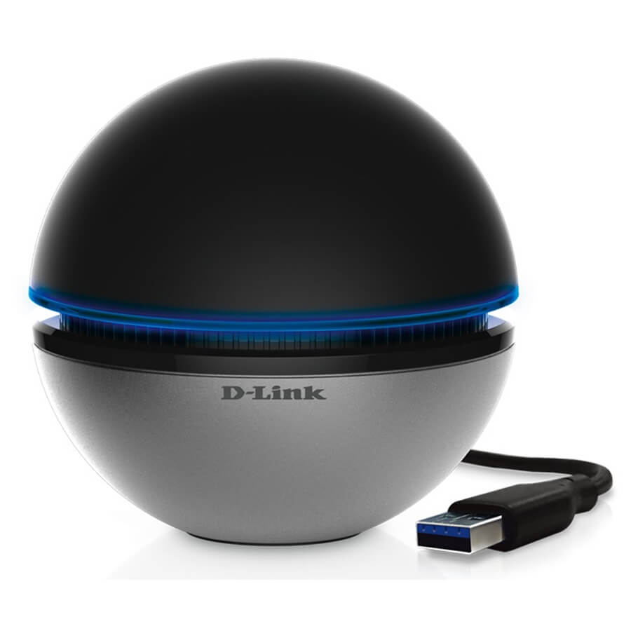 - DWA-192 thoạt nhìn trông hệt như quả cầu nhỏ với vỏ ngoài bằng nhựa cứng, kèm theo đó dải đèn LED màu xanh khá bắt mắt thông báo trạng thái kết nối với máy tính cũng như kết nối mạng. Dải đèn LED này có thể được tắt/mở thông qua nút nhấn trên thân thiết bị.