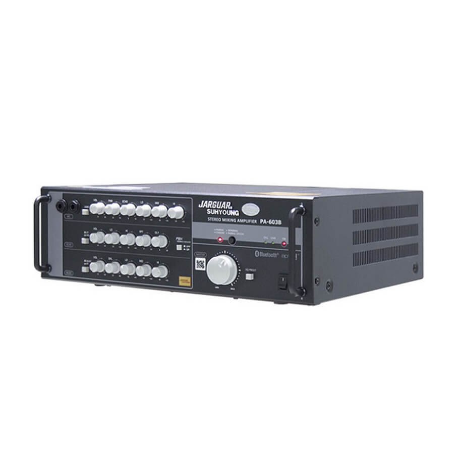 - Amply JARGUAR SUHYOUNG PA-603B là bản nâng cấp, thiết kế tinh gọn nhưng vẫn đảm bảo những tính năng cao cấp, công nghệ Bluetooth mới cùng với vẻ ngoài sang trọng thừa hưởng từ những dòng amply karaoke trước như PA-601A, PA-602A.