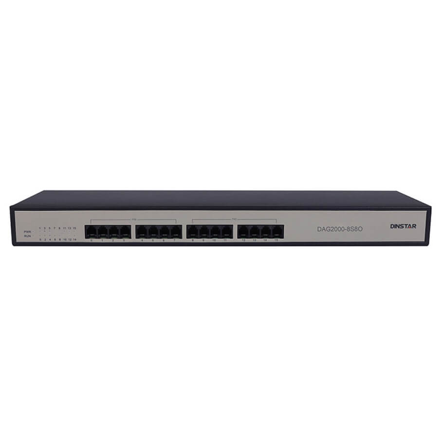 - Dinstar DAG2000-8S8O là cổng thoại và fax đa năng dựa trên IP. Được sử dụng dành cho các doanh nghiệp nhỏ, các văn phòng tại gia, văn phòng ở xa, các chi nhánh doanh nghiệp cung cấp giải pháp VoIP chi phí thấp, hoạt động đơn giản. FXS/FXO kết hợp cổng kết nối hỗ trợ khi mất kết nối mạng hay mất điện, linh hoạt nhận ra khả năng tương tác với PBX mô phỏng và đảm bảo chất lượng thoại trong quá trình chuyển đổi thoại truyền thống sang thoại IP. Hỗ trợ giao thức SIP tiêu chuẩn và IPPBX chính thống tương thích và nền tảng softswitch.