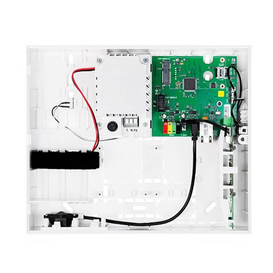 - Bảng điều khiển có: 1 bảng đầu nối cho kết nối bus, 1 đầu nối cho mô-đun radio tích hợp (JA-111R), và 1 đầu nối cho mô-đun giao tiếp GSM/GPRS (JA-192Y).