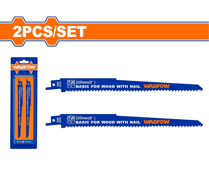 - Bộ 2 lưỡi cưa kiếm (cưa gỗ có đinh) 225mm (9”) WadFow WJT1111DF được thiết kế đặc biệt cho các công việc cưa gỗ có đinh trong các dự án xây dựng, thợ mộc và nhiều ngành công nghiệp khác.