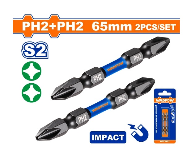 Bộ 2 mũi bắt vít đóng 2 đầu PH2+PH2 65mm WADFOW WSV3K62