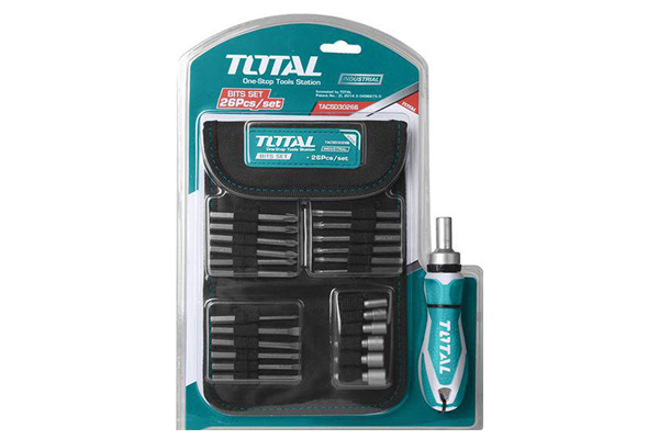 - Bộ đầu vít Total được sắp xếp gọn gàng trong hộp dụng cụ giúp bạn nhanh chóng tìm kiếm loại vít và sử dụng khi cần. Tất cả các bộ tua vít của Total đều được thiết kế nhỏ gọn nên, thông minh dễ dàng mang theo hoặc cất giữ.