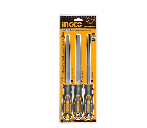 - Bộ 3 giũa sắt INGCO HKTFS1308 bao gồm 1 giũa sắt dẹp, 1 giũa sắt tròn và 1 giũa sắt bán nguyệt được sử dụng để giũa, mài chất liệu bằng kim loại.