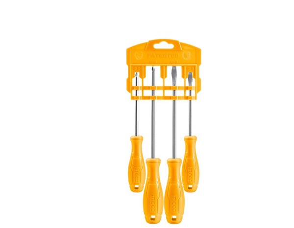 - Bộ 4 tua vít INGCO HKSD0458 gồm: 1pcs SL5x100mm, 1pcs SL6x150mm, 1pcs PH1x100mm, 1pcs PH2x150mm.
