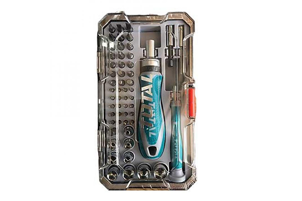 - Bộ đầu vít Total được sắp xếp gọn gàng trong hộp dụng cụ giúp bạn nhanh chóng tìm kiếm loại vít và sử dụng khi cần. Tất cả các bộ tua vít của Total đều được thiết kế nhỏ gọn nên, thông minh dễ dàng mang theo hoặc cất giữ.