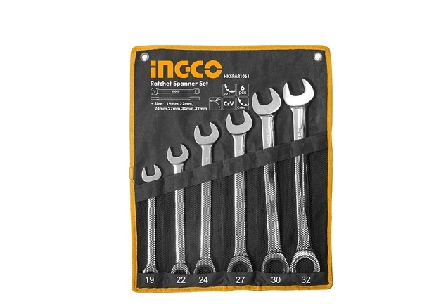 - INGCO HKSPAR1061 bao gồm 6 cờ lê miệng vòng hai chiều, kích thước: 19-32mm (19mm, 22mm, 24mm, 27mm, 30mm, 32mm).