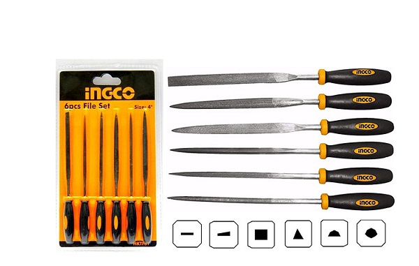 - Bộ 6 giũa sắt INGCO HKTF63 bao gồm 1 giũa sắt dẹp, 1 giũa sắt tròn, 1 giũa sắt bán nguyệt, 1 giũa sắt vuông, 1 giũa sắt tam giác và dao. Được sử dụng để giũa, mài chất liệu bằng kim loại.