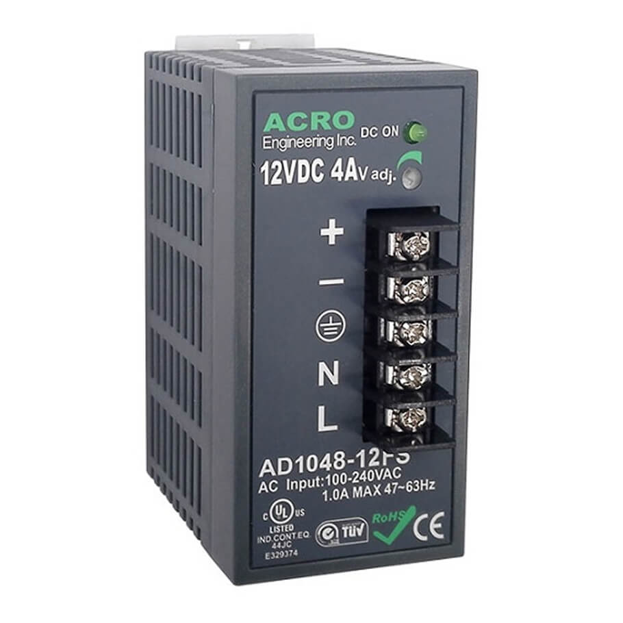 - Acro AD1048-12FS được thiết kế cho các ứng dụng công nghệ kiểm soát dùng gắn trên tường, hoặc bất kỳ bề mặt lắp đặt. Bộ nguồn được thiết kế cho kích thước nhỏ gọn tiết kiệm được rất nhiều không gian thuận tiện hơn để thiết kế và lắp đặt trong hệ thống điện và điều khiển.