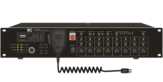 - VA-6200MA là bộ điều khiển trung tâm đa năng trong hệ thống âm thanh thông báo, di tản của ITC. Thiết bị hỗ trợ kết nối, thông báo tới 8 vùng loa và tích hợp sẵn tăng âm công suất 500W. Thông qua phần mềm quản lý PC, bạn có thể thực hiện tùy chỉnh và kiểm soát chức năng hệ thống, tự động giám sát và quản lý trạng thái vùng loa của hệ thống, tự động giám sát và quản lý thiết bị đầu cuối. Thiết bị chủ yếu được sử dụng trong các khu dân cư thông minh, trung tâm mua sắm, trung tâm mua sắm và các tòa nhà như báo động bằng giọng nói và nhạc nền.